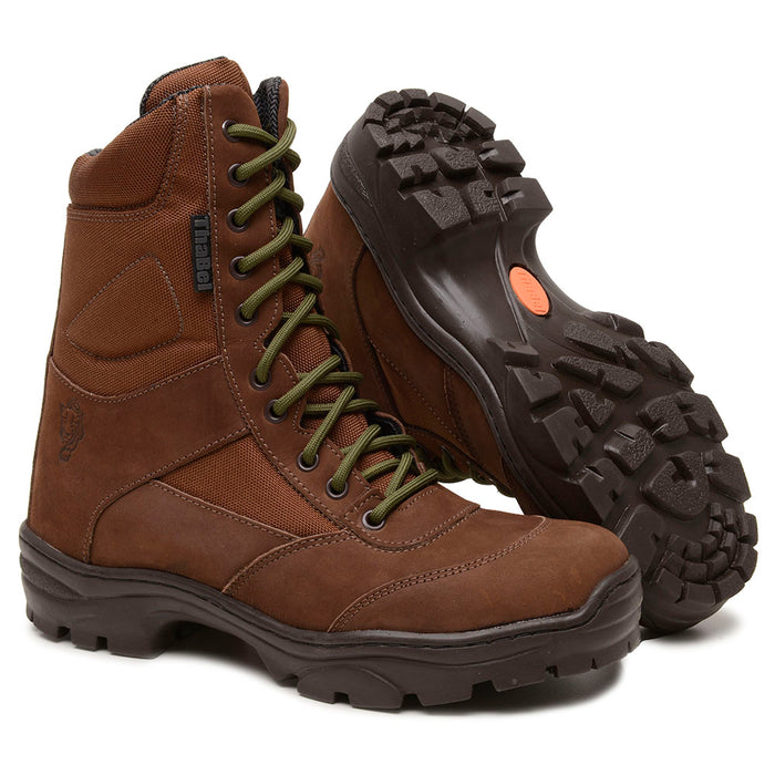 O Bota Coturno Militar Tático Invader Marrom PQD foi desenvolvido para atender às exigências de profissionais de segurança, militares e aventureiros que necessitam de desempenho confiável em qualquer situação. Produzido em couro legítimo hidrofugado de 2 mm, o coturno é resistente à água e poeira, oferecendo maior durabilidade e proteção. A palmilha anti perfuro garante segurança extra contra objetos pontiagudos, tornando-o adequado para ambientes de risco.